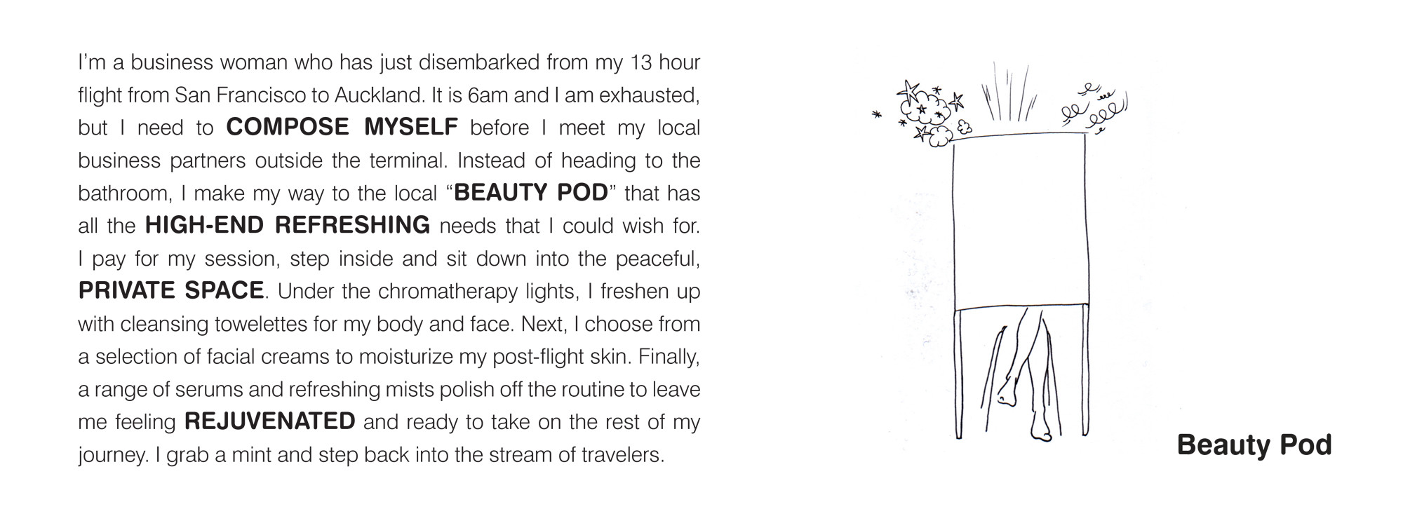 Inspired by Airport Retail Trends: self-service; mobile; way finding; [RCE 2012]; authenticity; interactive; mobile; [REP 2014]; omnichannel; mobile wallet; personalized experience; [Vend 2014].